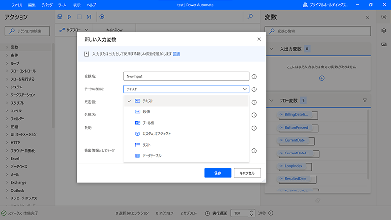 今回のアップデートでは、入出力変数に設定できるデータ形式の種類が増えました。