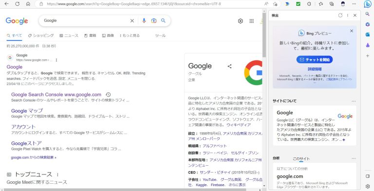Microsoft 365 Copilotは現在限られた企業でしか使用できる環境ではないため、現在リリースされている「Bing AI」の使用感を見てみましょう。