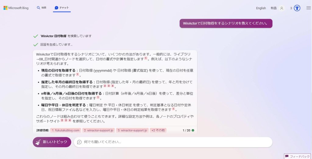 BingAIは回答を出力した情報ソースを明記してくれるので、内容を確認するのも簡単です。
